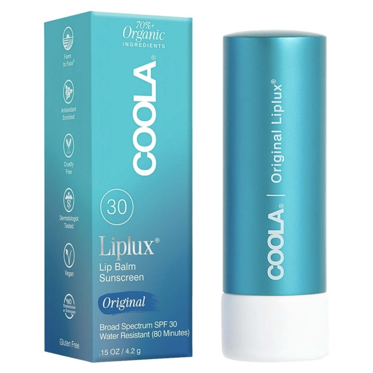 Classic Liplux Lip Balm Original SPF30 4,2g Classic Liplux Lip Balm Original SPF30 er en økologisk lip balm med bredspektret UVA-/UVB-beskyttelse og naturlig fruktsmør som gir fuktighet, jevner ut og tar vare på tørre, sprukne lepper. Vitamin- og antioksidantrik formel nærer og pleier med økologisk cupuaçusmør og hindbærkjerne- og jojobaoljer. Balmen er vannavvisende og etterlater leppene myke og er laget på en formel med reef-friendly aktive ingredienser.