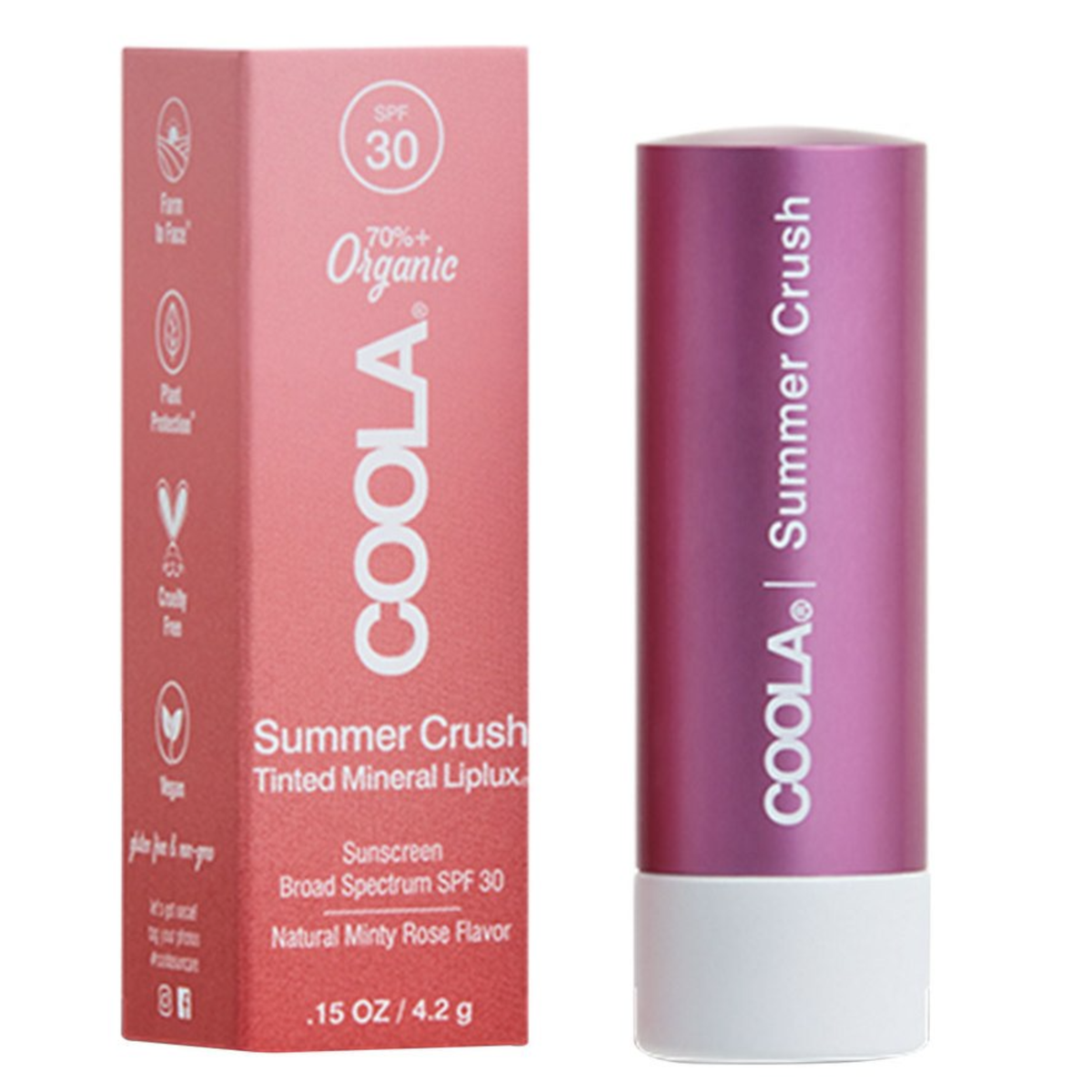 Mineral Liplux Organic SPF30 Summer Crush 4,2g Mineral Liplux Organic SPF30 er en farget mineral leppebalm med SPF som beskytter med en lekker og diskret fuktighetsgivende farge. Hver Mineral Liplux har sin egen unike nyanse og smak som holder leppene dine myke og optimalt beskyttet. Økologisk cupuaçusmør og mongongo-olje gir den en ultra-kremet konsistens, som hjelper med å mykgjøre, nære og fukte leppene, så de ser sunne, fyldige og ungdommelige ut.